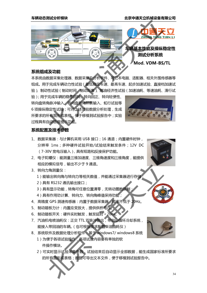 车辆基本性能及操纵稳定性测试分析系统